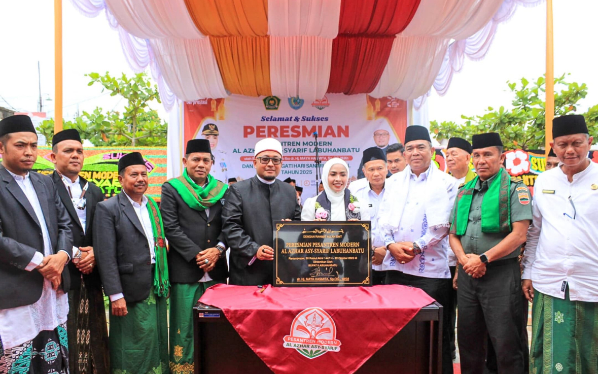 Bupati Labuhanbatu, dr. Hj. Maya Hasmita, Sp.OG., MKM., meresmikan Pondok Pesantren (Ponpes) Modern Al Azhar Asy Syarif Labuhanbatu yang berlokasi di Lingkungan Perlayuan, Kelurahan Pulo ...